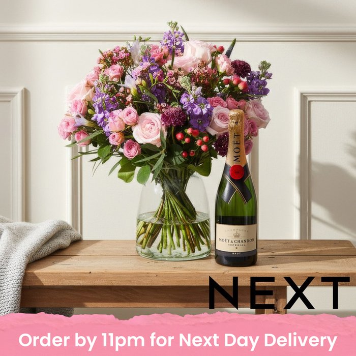 NEXT Rose and Lilac Stocks Bouquet & Moët Champagne Gift Set