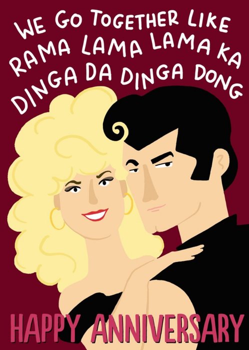 Grease Sandy and Danny We go together like Rama lama lama ka dinga da dinga dong Anniversary Card