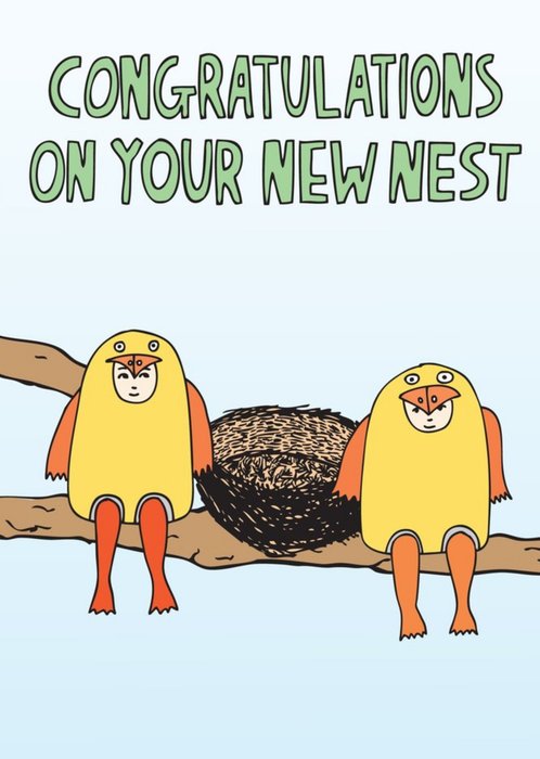 Funny Illustration Of A Couple Wearing Bird Costumes New Home Congratulations Card