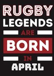 Text reads: "Rugby Legends Are Born In April". Month is customisable.