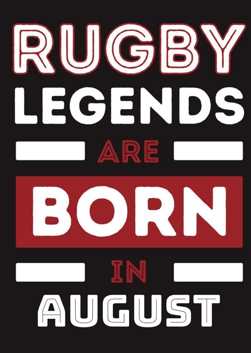 Text reads: "Rugby Legends Are Born In August". Month is customisable.