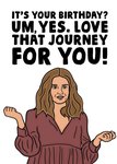 Front of card: Funny Spoof TV Show Love That Journey For You Birthday Card Illustrated TV character. Text reads: "It's Your Birthday? Um Yes Love That Journey For You"