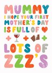 "Mummy I hope your first Mother's Day is full of love + wine+ chocolate + lots of zzz's."