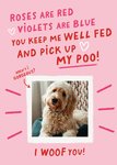 "Roses Are Red Violets Are Blue You Keep Me Well Fed And Pick Up My Poo! I Woof You!".