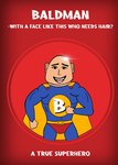 Gabi & Gaby Funny Illustrated Baldman Superhero Card