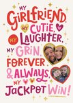 "My girlfriend, my cutie, my laughter, my grin, forever & always, my jackpot win!"