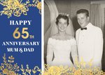 Gold Foiled Flowers 65th Blue Sapphire Anniversary Photo Upload Card