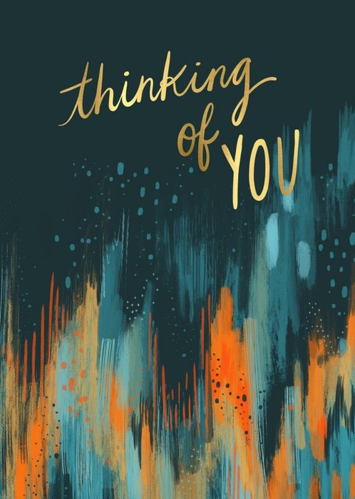 Gold Handwritten Typography On An Abstract Background Thinking Of You Card