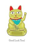 Illustration of a Japanese beckoning cat. Text reads: "Good Luck Tom!". 'Tom' can be personalised!