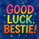 A warm, colourful design featuring bold rainbow gradient typography with small star illustrations on a dark blue background.