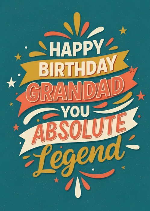 A modern typographic design featuring bold lettering on layered ribbon banners with stars, dots and confetti shapes on a teal background