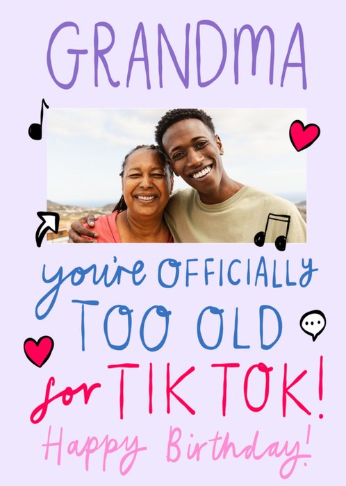 Grandma Officially Too Old For Tik Tok Photo Upload Birthday Card