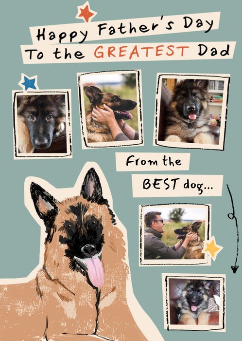Text reads "Happy father's day to the greatest dad from the best dog...".