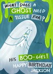 "What does a ghost need a tissue for? His BOO-gies! Happy Birthday Jackson"