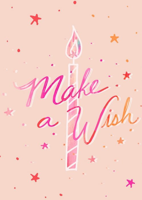 Handwritten Typography With A Candle Make A Wish Birthday Card