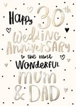 Happy 30th Wedding Anniversary Mum & Dad Typography Card