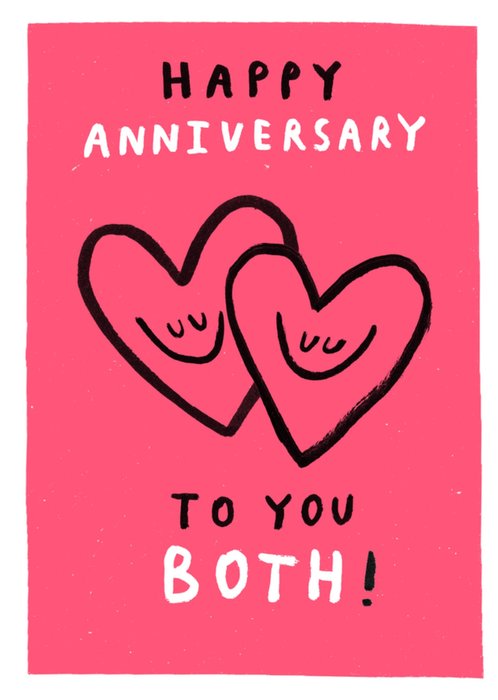 Happy Anniversary To You Both Illustrated Hearts Card
