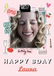 Happy Bday fun modern photo upload card - stickers emojis