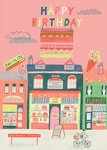 Featuring a vibrant illustration of shops including a cake shop, a chocolate shop and a florist.