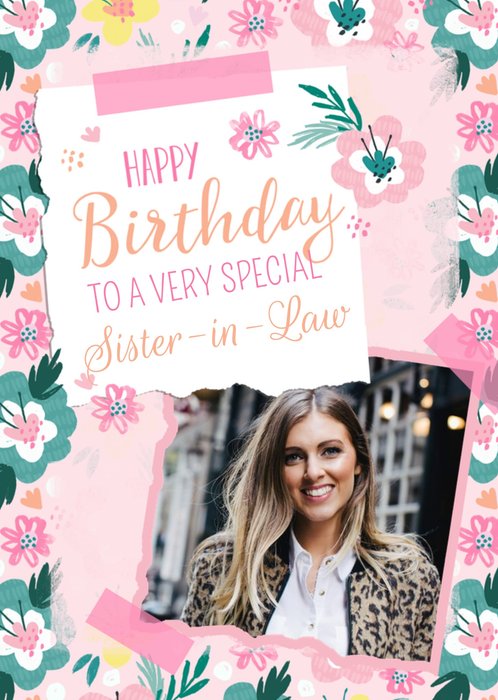 The caption reads Happy Birthday, with a second editable caption reads To A Very Special Sister In Law.