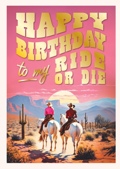 Happy Birthday To My Ride Or Die Illustrated Cowgirls Riding Card