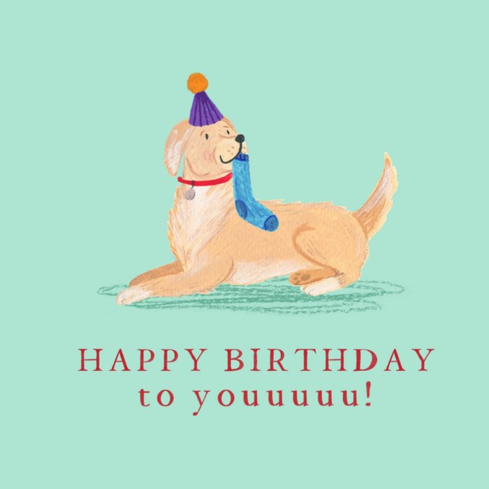 Happy Birthday To Youuuuu Illustrated Golden Retriever Card