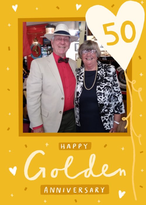 Happy Golden Anniversary Illustrated Photo Upload Card