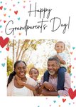 Featuring a large photo upload area, surrounded by a confetti of coloured hearts and an elegant script font.