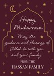 Text reads: "Happy Muharram. May the guidance and blessings of Allah be with you and your family. From the Hassan Family."