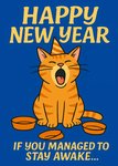 Happy New Year Yawning Cat Card