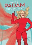 Features an illlustration of a celebrity. Text reads "Have a Padam good birthday".