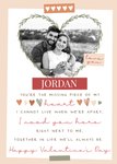 "Love you Jordan you're the missing piece of my heart I cannot live when we're apart, I need you here right next to me, together in life we'll always be, happy Valentine's Day". 'Jordan' can be personalised!