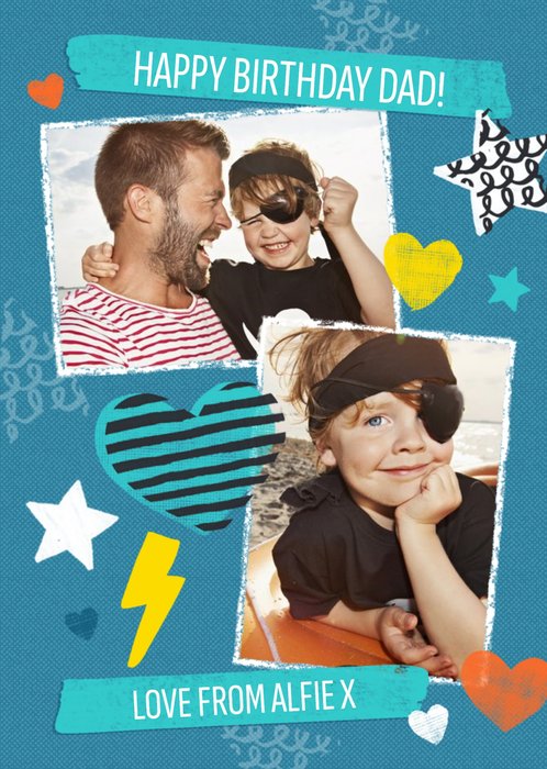 Hearts And Stars Personalised Double Photo Upload Birthday Card For Dad