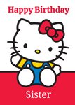 A bright and cheerful Hello Kitty birthday card designed especially for a sister. Featuring the iconic character in her classic outfit with a red bow, this cute and colourful card is perfect for Hello Kitty fans.