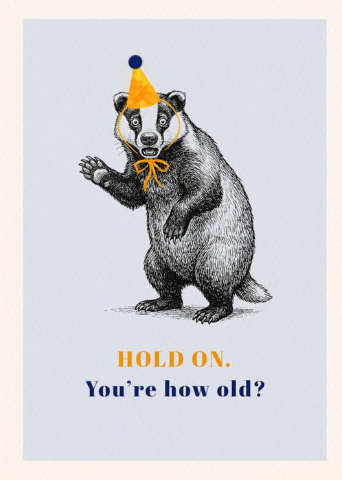 Hold On You're How Old Illustrated Badger Birthday Card