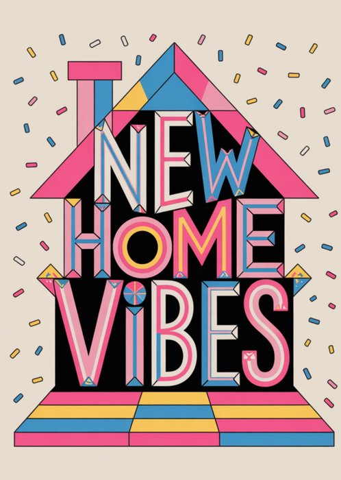 Featuring pastel-toned decorative lettering forming the phrase “Home is where the heart is!” The typography is styled with soft curves and flourishes, arranged inside an outline shaped like a house with a heart motif at the roofline on a warm cream background.