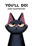 Humorous Illustrated Grumpy Black Cat Valentine's Day Card