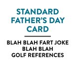 "Standard Father's Day card blah blah fart joke blah blah golf references".