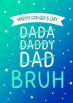 "Happy Father's Day Dada, Daddy, Dad, Bruh." The 3 words "Dada, Daddy & Dad" are crossed out.