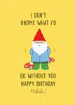 I Don't Gnome What I'd Do Without You Illustrated Birthday Card