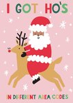 I got Hos In Different Area Codes Santa And Reindeer Illustration Pun Christmas Card