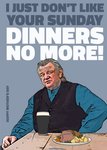 Front of card: I Just Don't Like Your Sunday Dinners No More! Mother's Day Card Illustration of the character Colm Doherty. Text reads: "I just don't like your Sunday dinners no more!".