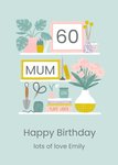 Illiustrated Shelves Houseplants Picture Frames Flowers Mum 60th Birthday Card
