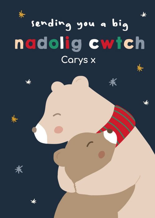 The card reads:"sending you a big nadolig cwtch, carys x". Carys x is editable