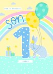 Illustrated Bunny Holding Birthday Balloons 1st Birthday Son Card