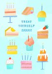Illustrated Cakes Treat yourself Birthday Card