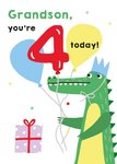 Illustrated Cute Crocodile Party Grandson Youre 4 Today Birthday Card