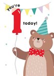 Illustrated Cute Cuddly Bear Youre 1 Today Birthday Card