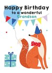 Illustrated Cute Party Hat Bowtie Foxt Happy Birthday To A Wonderful Grandson