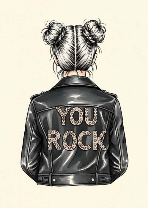 Illustrated Female Punk Leather Jacket You Rock Card